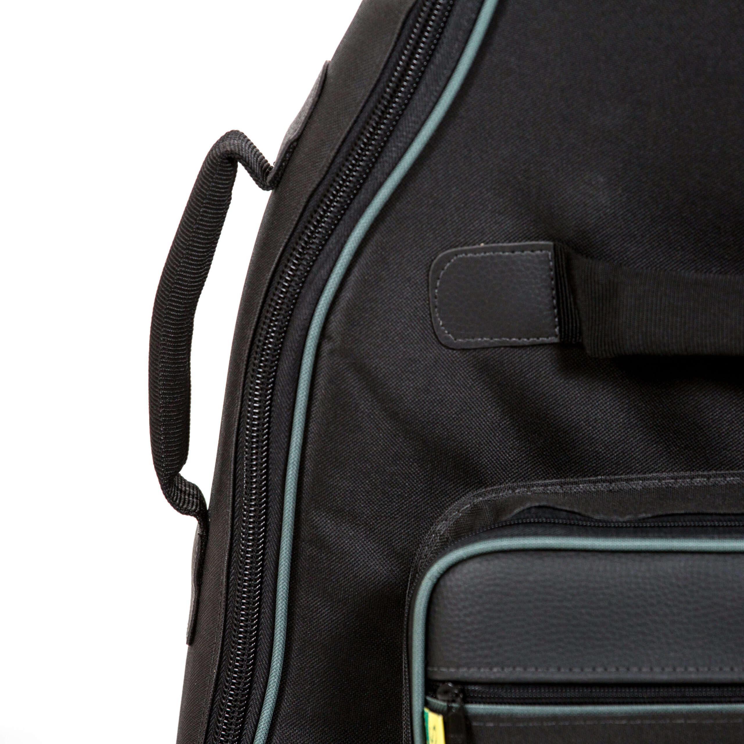 - Acolchoamento: A parte interna conta com um acolchoamento que amortece impactos e protege o instrumento contra arranhões e batidas leves.