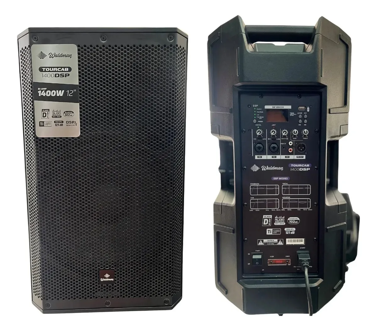 A Waldman TC-1400DSP entrega o equilíbrio ideal entre pressão sonora e clareza. Equipada com um amplificador Classe D, ela é leve para transportar e extremamente eficiente. O grande diferencial é o seu DSP interno, que permite ao usuário “moldar” o som da caixa para diferentes usos (como modo Monitor, DJ ou Live) através de um display LCD intuitivo, garantindo performance máxima em qualquer ambiente.