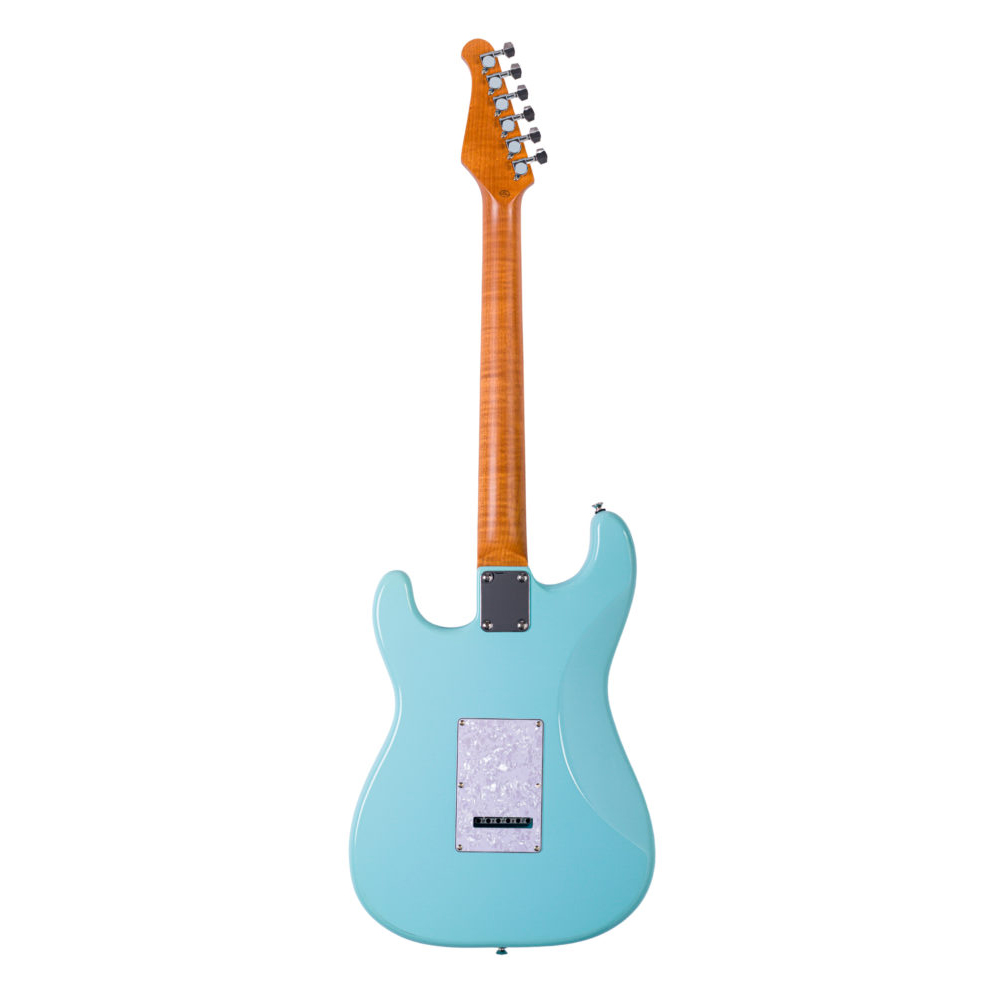 A Seizi Budokan Daphne Blue é um colírio para os olhos de qualquer guitarrista. Com seu tom azul pastel clássico e o escudo Pearl White (Perolado), ela evoca o charme da era de ouro das guitarras. Mas não se engane pelo visual retrô: por baixo do capô, ela carrega a versatilidade da configuração HSS e a estabilidade térmica de um braço tratado em alta temperatura.