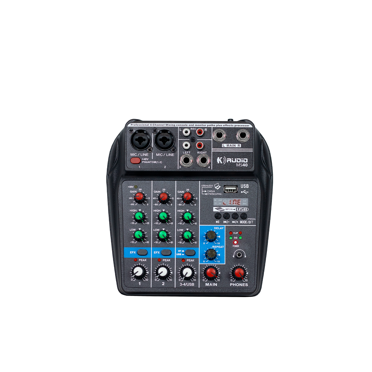 A MS40 da K-Audio combina a simplicidade de uso com a versatilidade moderna. Equipada com 2 canais híbridos (XLR/P10) e um canal estéreo, ela oferece tudo o que você precisa para mixar vozes e instrumentos com clareza. O grande destaque é a sua conectividade: ela funciona como Interface de Áudio, permitindo gravar direto no seu computador via USB, além de possuir Bluetooth para soltar playbacks sem a necessidade de cabos.