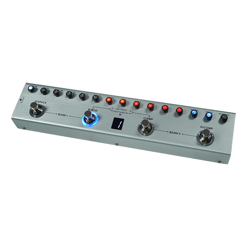 A Tank-B é uma pedaleira multi-efeitos poderosa e ultra-portátil, desenhada especificamente para as frequências do contrabaixo. Ela reúne simulações de amplificadores clássicos, efeitos essenciais (como o indispensável compressor) e suporte para Impulse Response (IR), permitindo que você leve o som de caixas lendárias diretamente para o sistema de som ou para sua gravação.