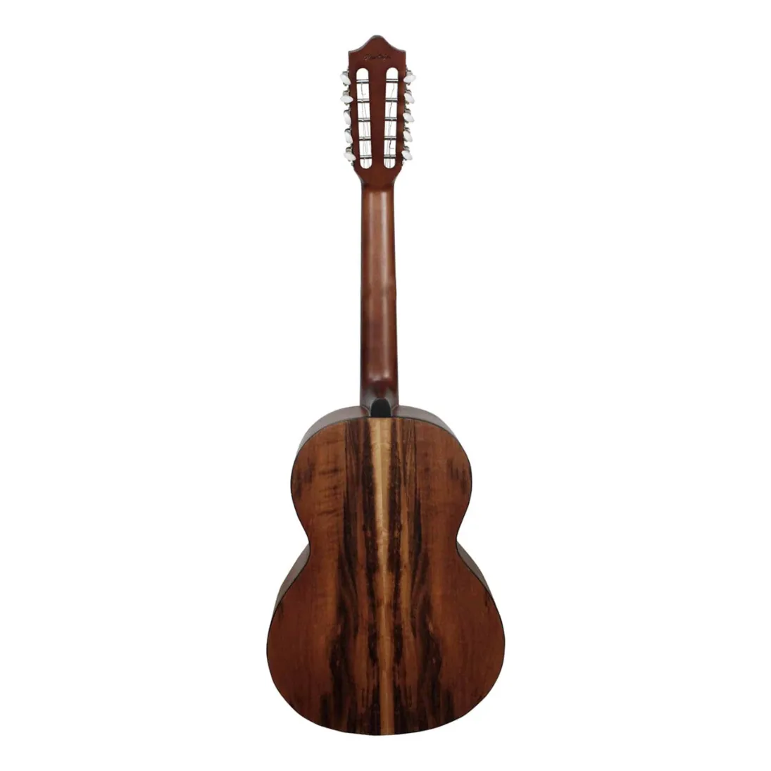 🪵 Corpo em Gonçalo Alves: Uma madeira brasileira densa e belíssima, que proporciona um som brilhante, com médios equilibrados e graves definidos. O acabamento Satin (Fosco) realça os veios naturais da madeira, tornando cada viola única.