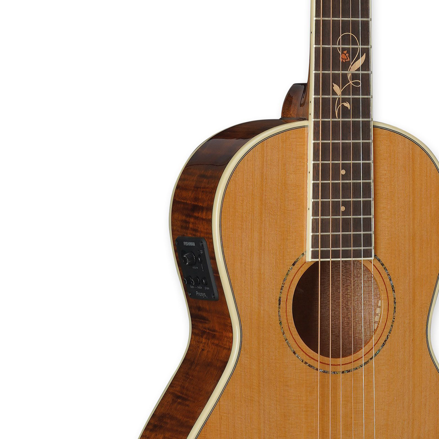 O grande trunfo desta versão é a união do Tampo Sólido em Cedro com a renomada eletrônica Fishman. Enquanto o cedro entrega graves quentes e médios doces acusticamente, o sistema Fishman garante que essa mesma riqueza tonal seja transmitida para as caixas de som com fidelidade cristalina.