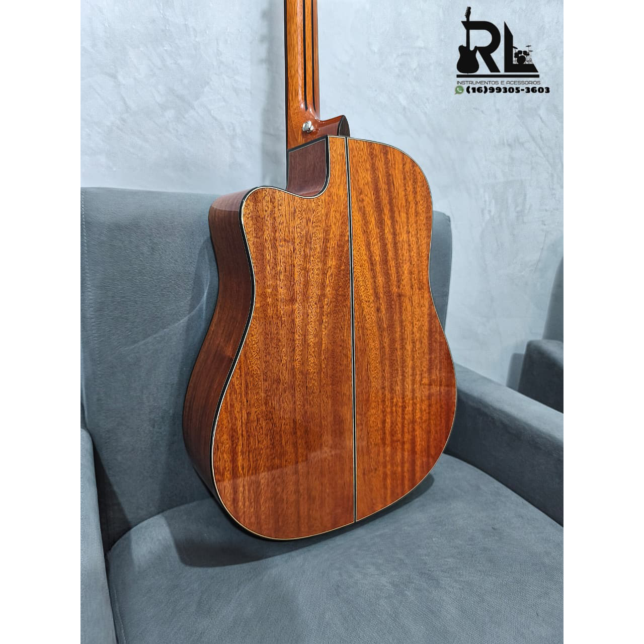 - Formato Folk (Dreadnought): O formato grande e tradicional Dreadnought garante um volume acústico potente e uma projeção sonora superior, o que é ótimo para tocar desplugado.